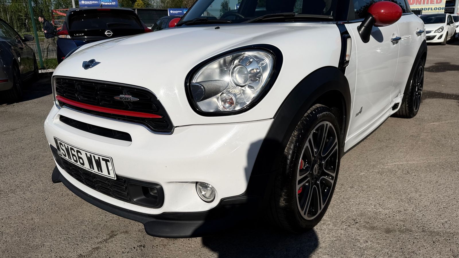 This vehicle is only 2 owners from brand new, Comes with a brand new 3 piece LUK clutch kit. Full timing chain replacement with genuine BMW parts and replaced by a MINI specialist. MOT 21/04/2027 This car comes with full service history with a recent service carried out. Half Leather interior, full JCW bodykit, Cruise Control, Climate Control, 4x Electric windows, Electric Mirrors, Aux, USB, Bluetooth, AC, 18" Alloy wheels, Twin exhaust, Reverse camera, Front fogs, 🚗✨ Discover the exhilarating MINI Countryman 1.6 John Cooper Works SUV, now available at East Leeds Car Sales! This stunning White beauty combines sporty performance with everyday practicality, boasting 218 PS and the coveted ALL4 all-wheel drive system. Perfect for both city streets and weekend adventures! 🌟 With only 2 previous owners and a full service history, this gem features a brand new 3-piece LUK clutch kit and a complete timing chain replacement using genuine BMW parts. Just passed its MOT—valid until 21/04/2027—so you can drive with confidence! 🛠️ Step inside to enjoy a luxurious half-leather interior with the stylish Cloth-Leather Parallel Lines in Light Tobacco. The CHILI Pack enhances your driving experience with features like bi-xenon headlights 🌈, automatic air conditioning 🌬️, and seat heating for ultimate comfort during chilly mornings. Never get lost in the dark with automatic headlight activation and rain sensors, plus enjoy the added flair of red roof and mirror caps. With 18" alloy wheels, twin exhausts, and a full JCW bodykit, this MINI is as bold as it is beautiful. Don’t miss out—contact East Leeds Car Sales today! 🌟📞